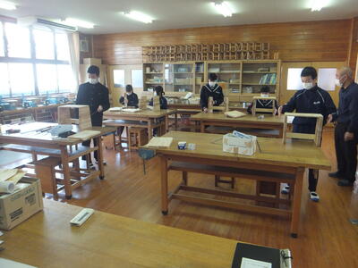先日、技術の授業を参観しました。1年生は『いす』の制作でした。『のこぎり』や『のみ』等を使って自分のいすをつくっていました。2年生は『ラジオ』の制作でした。全員、上手にできあがっていました。できあがった『ラジオ』(今のラジオはBluetoothに対応しているのですね。私の車のラジオはBluetoothに対応していません。年式が古いからですね。走行距離がなんと30万キロを超えました・・・まだまだ走ります。すみません。余計な話でした・・)を試聴しながら、3年生になって技術の授業で使う『板』を自分たちで準備していました。3年生は『いす』の制作を行っていました。みんな、熱心に取り組んでいました。(校長:鎌田浩二)