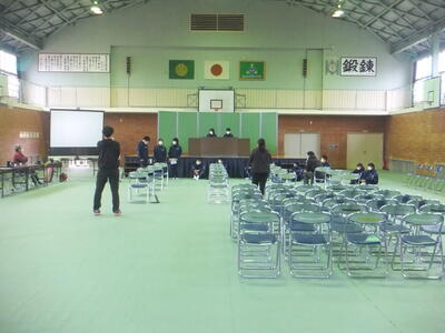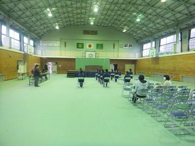 ※体育館にはステージがありません。式典等の時は、事前にみんなでステージを組み立てます。組み立てるのに時間がかかります。