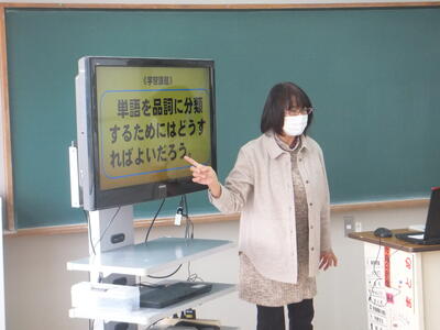 ※カード(国語の先生の手作りカードだと思います。ありがとうございます。)を使って品詞を分類します。テンポよく進んでいます。