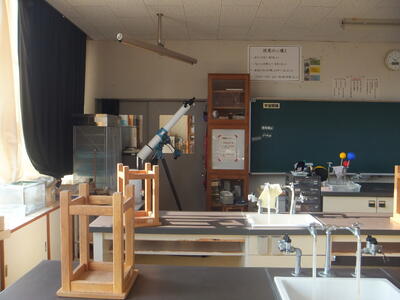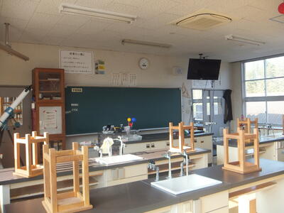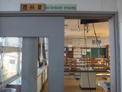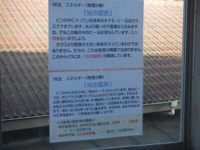今回も校内の紹介をします。今回は『理科室』です。『理科室』は2階の一番東側にあります。出入口には、理科担当の先生がいろいろなものを展示してくれています。いつもありがとうございます。(校長:鎌田浩二)