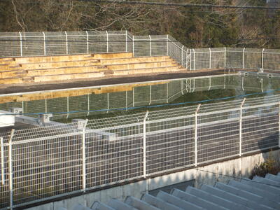 ※理科室から戻る際に、右側に見える『プール』が気になりました。以前は、中学生が使っていたそうですが、現在は使っていません。中学生も小学校のプールを使っています。生徒が減ったので小中学校で1つのプールを使った方が経費等の削減につながりますね。使われなくなった中学校のプールは『防火用』として水がためられています。