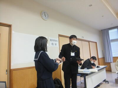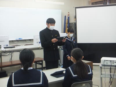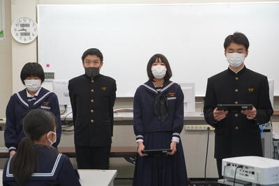 本日:1月13日(金)、うれしいことがありました。1月10日(火)に行われた『地域と学校の連携・協働に向けてワークショップ』に出席されていた方が来校されて、『本校生徒の発表内容や発表態度が素晴らしかった。』とお褒めの言葉をいただきました。みなさんが褒められると私も褒められている感じがしてうれしくなりました。みなさんの熱心な取組、先生方のご指導、そして保護者のみなさまや地域の方々のご指導のおかげだと思います。これからも自分の考えを自信をもって発表してください。今日はうれしかったです。お忙しい中、来校していただきありがとうございました。本日の帰りの会で先生方や生徒のみなさんにうれしかったことを伝えました。(校長:鎌田浩二)