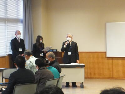 ※事務局の方々です。お疲れ様です。西田教育長のあいさつです。