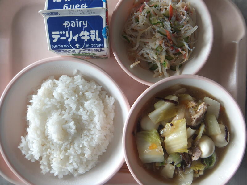 本日:1月16日(月)の給食は『ひむか地産地消』の日でした。『みやざきの食と農を考える県民会議』では、毎月16日を『1→ひ』、『6→む』、『日→か』から、『食育』と『地産地消』を実践する日と定めているそうです。(献立表より)メニューは、『牛乳・麦ご飯・八宝菜・春雨の酢の物』でした。おいしかったです。(校長:鎌田浩二)
