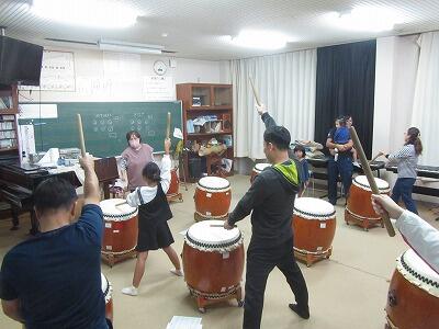 10月31日にPTAの家庭教育学級がありました。今回は東雲太鼓にチャレンジということでみんなで太鼓の体験を行いました。全身を使って太鼓をたたくことは思った以上に難しかったのですが、先生が段階的に教えてくださり、みんな楽しく太鼓をたたいていました。中学生が普段普通に演奏していることはすごいことなんだということを改めて感じました。太鼓指導の先生や参加いただいた皆様方ありがとうございました。