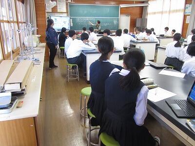 2年生の社会の授業では、産業革命について、資本主義、社会主義等についての学習、3年生の理科では、斜面を下りる台車の運動を結果から考える授業を行っていました。