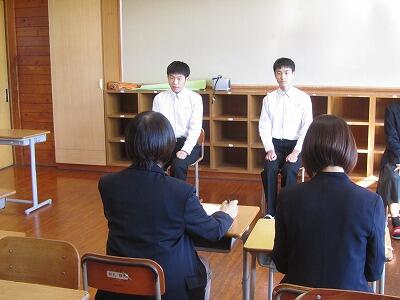 11月6日に高原中との中中連携が行われました。2年生は理科、数学の授業の後、働くことについてのワークショップや職場について学習を行いました。3年生は、社会、理科の授業の後、面接におけるマナーの講話と面接練習を行いました。大人数の中、緊張もあったと思いますが、みんな一生懸命に取り組んでいました。関わっていただいた講師の先生方、中学校の先生方ありがとうございました。