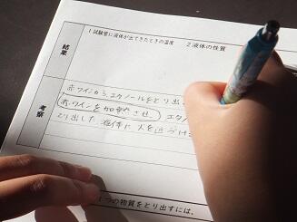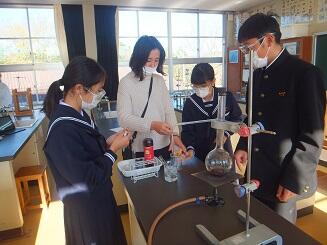 落ち着いた雰囲気の中、生徒はしっかりと実験に取り組み、自分の言葉でまとめていました。(校長:鎌田浩二)