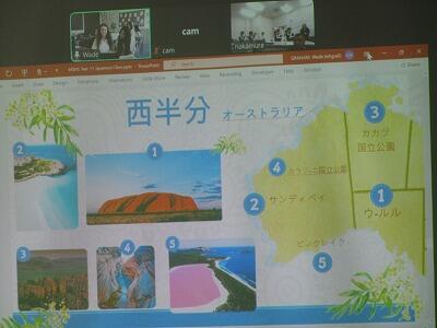 11月5日に国際交流の学習がありました。オーストラリアのクイーンズランド州にあるマルチードアステート高校の2年生、日本語クラスの生徒との交流学習を行いました。本校の生徒は、英語で学校の様子や日本の祝日等について説明を行いました。オーストラリアの生徒は、オーストラリアの文化や先住民、名所等について日本語で説明を行い、お互い質問をしあいました。本校の生徒たちは緊張しながらも上手く話していました。とても貴重な経験になりました。ご協力いただいた関係者の皆様方、ありがとうございました。