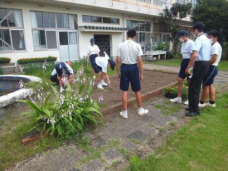 本日:6/23(水)、花壇の整備を行いました。今後、水やりや草抜き等の手入れもよろしくお願いします。(校長:鎌田浩二)