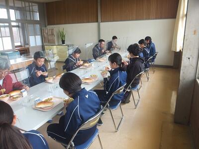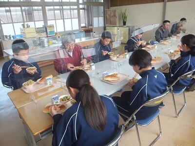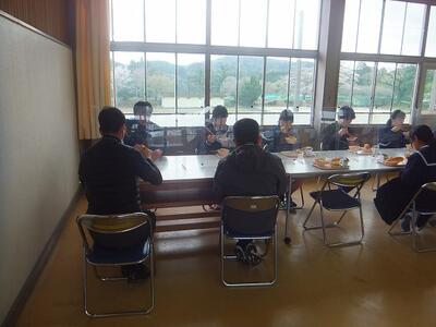 給食・食事本日:3月23日(木)は、本年度最後の給食でした。普段は各教室での給食ですが、本日は換気をしっかりと行ったりパーティションを置いたりして、最後の給食を生徒と先生方で会食しました。これからはだんだんとコロナウイルス感染対策の緩和もみられると思います。早く従来のスタイルに戻るといいですね。(校長:鎌田浩二)※準備です。