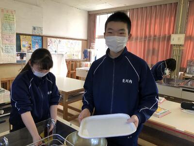 2月14日(水)、今日、明日は本年度の最後となる校内テストです。テスト中にまわるとペンとテスト用紙をめくる音だけが響いていました。集中力が少しでも欠けると申し訳ないので、写真に納めることはしませんが、一生懸命頑張っていました。それぞれに良い結果が出ると良いのですがどうでしょうか。昨日家庭科の時間に1・2年生がカップケーキを作っていました。給食の時間に、3年生の先輩達に配っていました。3年生の皆さん、優しい後輩たちがいて良かったですね。
