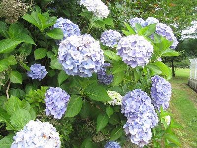 本校のあじさいもほとんど青っぽいのですが、体育館のトイレ裏のあじさいは少しですが赤っぽい色をしています。とても面白いですね。