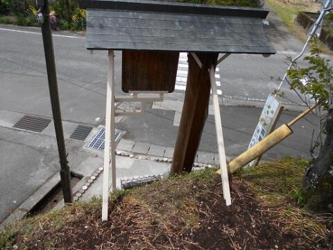 ここ数年、傷みが進んでいた学校入口の標柱ですが、補強をすることで撤去せずにそのままの姿を残すことができました。保護者、地域の方々にご協力いただき完成しました。今回は安全強化のため支え柱の根元にコンクリートを打ち、標柱の裏に鉄筋を添えるとともに、土手にも鉄筋で支えをしてくださいました。さらに、標柱の根元のコンクリート部分には校章を施してくださり、以前にも増して立派な標柱が出来上がりました。