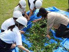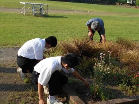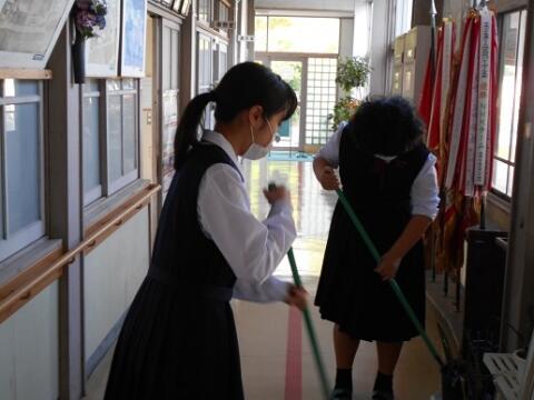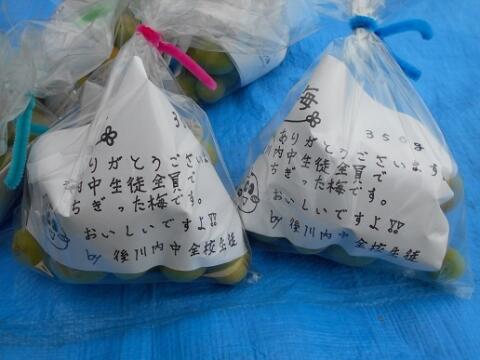「梅ちぎり」は例年、後川内保育所の園児の皆さんにも助っ人に来ていただいているのですが、今回は中学生だけで行いました。今年は梅の実が特に少なく、楽しみにされていた保護者・地域の方にあまりご提供できなかったのが残念でした。「ゴミ0」の日には全校生徒と職員で、普段はあまり掃除できないところを中心に、朝の時間に清掃しました。きれいな環境の中で、また勉強にスポーツに頑張ります。