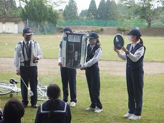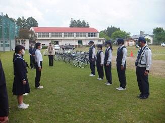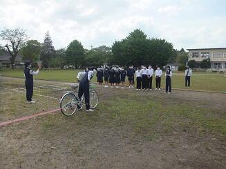 本日:4/23(金)、小林警察署・小林交通安全協会より来校していただき、「交通安全教室」を実施しました。特に、自転車運転のルールについて確認後、実際に運動場を自転車で走って確認しました。今回、学習したことをしっかり守り、交通事故を未然に防ぎましょう。(校長:鎌田浩二)