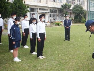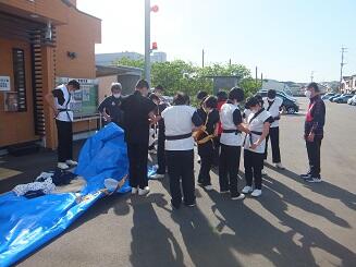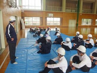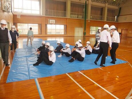 児童・生徒、そして教職員が体育館に避難し、保護者への引き渡す際の手順等の確認を行いました。(校長:鎌田浩二)