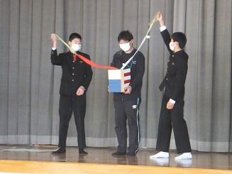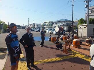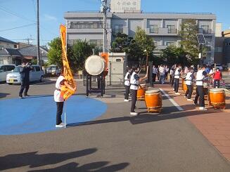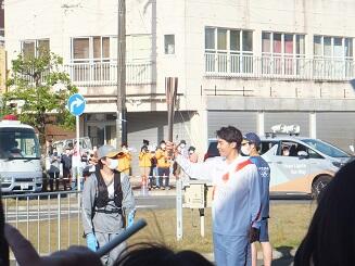 本校生徒による「東雲太鼓」の演奏で聖火リレーを盛り上げました。他地区での演奏は久しぶりだったので、緊張もあったようですが、自信にもつながりました。お疲れさまでした。(校長:鎌田浩二)