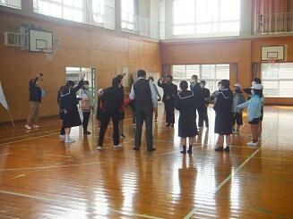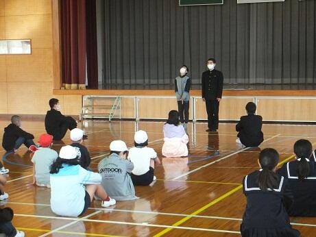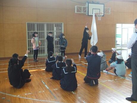4月27日(火)、後川内小学校の体育館で小中合同運動会の結団式を行いました。