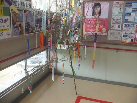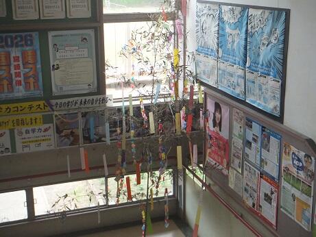 本日:7/7(水)、本校階段の踊り場に七夕飾りを行いました。七夕の短冊は、小林地区更生保護女性会のみなさまからいただきました。ありがとうございます。