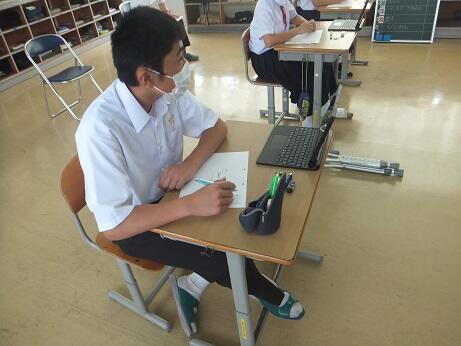 7月9日(金)、参観日を実施しました。お忙しい中、参加していただき、ありがとうございました。今回、2・3年生は高校説明会を開催しましたので、授業参観は1年生のみでした。もうすぐ夏休みです。学期の締めくくりをしっかりとお願いします。