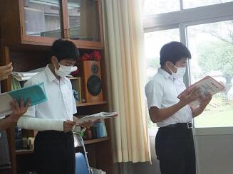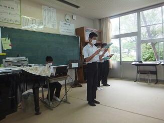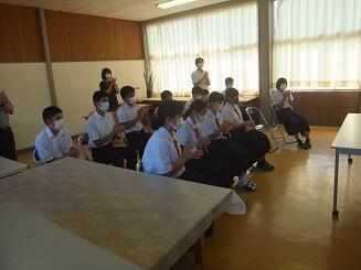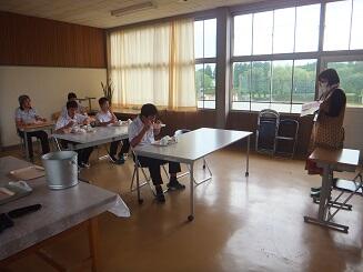 本日:7/15(木)、朝、フルーツバスケット(地区の読み聞かせグループ)の方に来校していただき、読み聞かせを行いました。生徒は真剣に聞いていました。