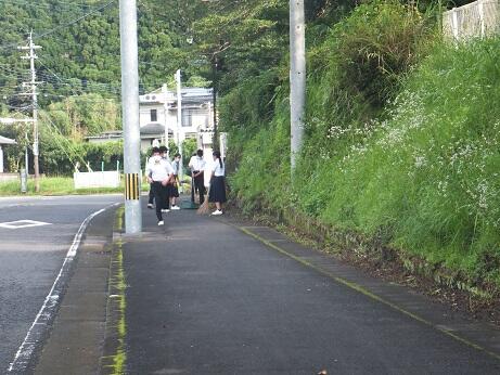 本日:7/13(火)、朝の時間に学校近くの歩道の清掃をしました。生徒総会の時、保護者の方や地域の方々に感謝の気持ちを表すにはどうすればよいかというテーマで話し合った結果、清掃活動に取り組むことになりました。毎週、火曜日と木曜日に実施する計画です。よろしくお願いします。天候や学校行事の関係で中止になることもあります。(校長:鎌田浩二)