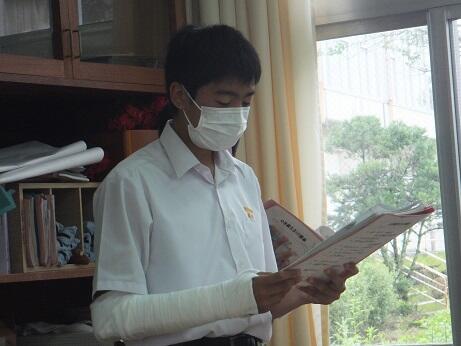 明日から、夏休みに入ります。規則正しい生活を送ってください。また、県大会に出場する選手のみなさんは地区の代表として、しっかりと望んでください。期待します。