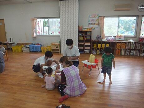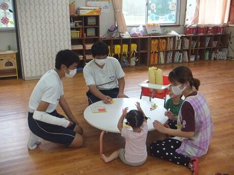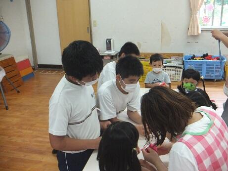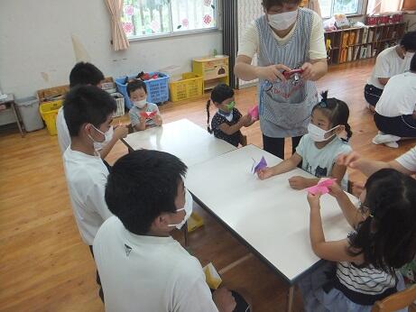 本日:7/21(水)、3年生が「後川内保育園」で保育体験を行いました。折り紙で