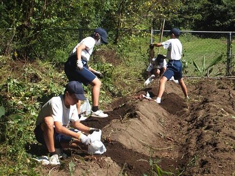 本日:10月6日(水)、2年生が自分たちが育てた芋の収穫しました。昨年度と比べると、虫に食べられてなくきれいな芋ができていました。収穫した芋は自宅に持って帰ったり、家庭科の調理実習で使ったりします。(校長:鎌田浩二)