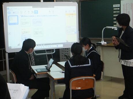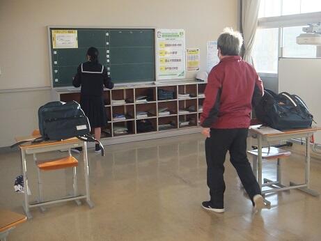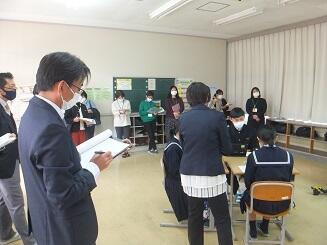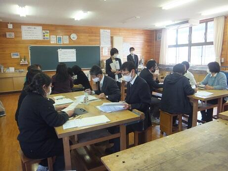 本日:11月24日(水)午後、町内の先生方が後川内小学校と後川内中学校に集まって、研究会が行われました。本校では1年生国語の授業と2年生社会の授業を参観されました。来校された先生方から、「生徒のあいさつがいいですね。」とか「授業中、自分の意見をもって集中して取り組んでいますね。」等のお褒めの言葉をいただきました。