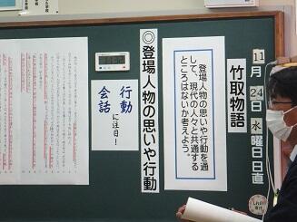 11月25日(木)、今年、最後の読み聞かせを行いました。読み手には、瀬戸口美智子様(学校評議委員・地区読み聞かせボランティアグループ)に来校していただきました。みんな、集中して参加していました。(校長:鎌田浩二)