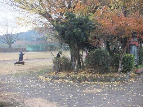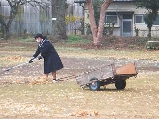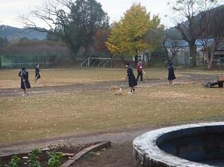本日:11月22日(月)昼休みに、運動場に落ちた落ち葉を清掃しました。