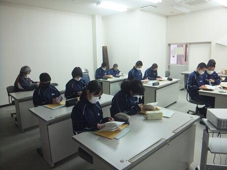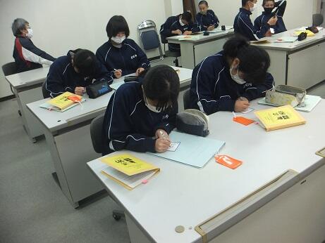 入浴の待ち時間を使って、しおりの記入や勉強をする人もいます。