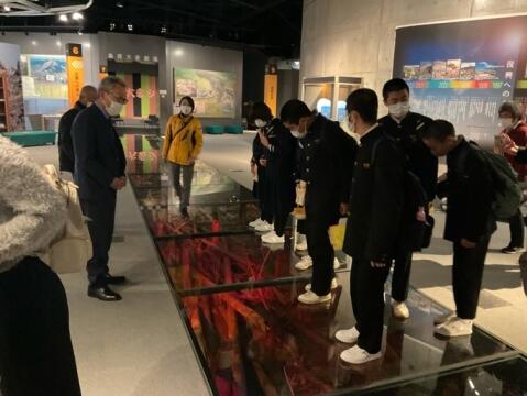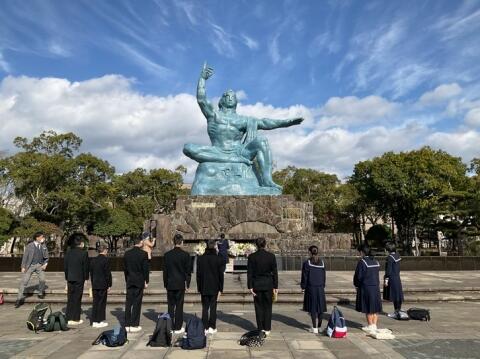 後半は、長崎平和ガイドの方に同行していただき、平和公園周辺の見学を行いました。