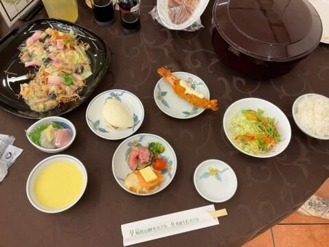 本日の夕食は、長崎名物皿うどんや角煮まんがあり、長崎の食を楽しむことができました。