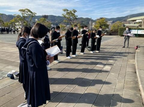 本日:12月17日(金)、修学旅行前の最終指導を行いました。コロナ禍の影響を受けて延期しました修学旅行ですが、12月19日(日)から2泊3日の日程で長崎・熊本方面へ修学旅行に行きます。よい思い出をたくさんつくってください。事故やけがには十分に気をつけてください。(校長:鎌田浩二)