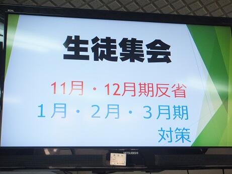 本日:1月19日(水)、生徒集会を実施しました。11月と12月の反省、そして1月・2月・3月の取組について説明がありました。反省を生かして、今後、取り組んでください。また、先輩から「原稿を見ないで伝えられるといいですね。」とアドバイスがありました。次回はチャレンジしてください。私も頑張ります。(校長:鎌田浩二)
