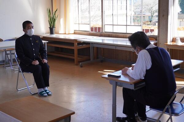 本日:1月21日(金)、3年生は、コロナウィルス感染拡大防止対策を行い、入試に向けた面接練習を行いました。生徒は緊張をしていましたが、自分の考えを自分の言葉で述べていました。体調管理をしっかりと行い、自信をもって受験してください。来週はいよいよ私立高校入試です。みなさんの頑張りを期待します。(校長:鎌田浩二)
