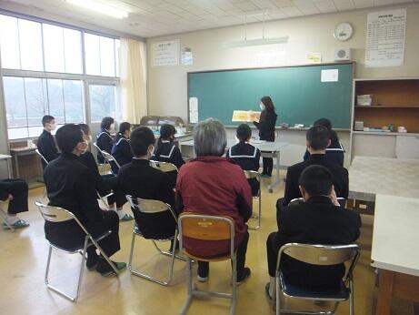 本日:1月27日(木)、コロナ感染対策を十分に講じた上(窓を開ける・時間を短くする等)で、フルーツバスケットの方(地域の保護者を中心とした地域の読み聞かせボランティア)による読み聞かせを実施しました。みんな、真剣に参加していました。