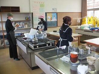 本日:2月2日(水)、2年生が家庭科の時間に調理実習を行いました。今、勉強している栄養群を考えて、自分たちでメニューを考えたそうです。すごいですね。家でもつくってみてください。次回は、食べている時、教室へ行きます。(笑)(校長:鎌田浩二)