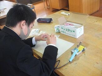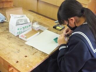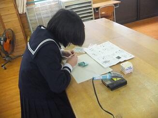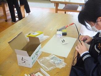2年生は技術でした。一言もしゃべらず、集中してハンダ付けに取り組んでいました。自分がつくったラジオがうまく受信するか楽しみですね。