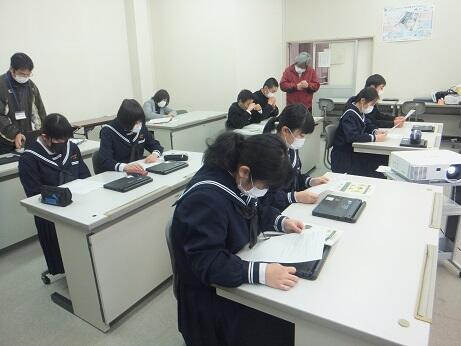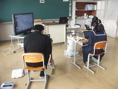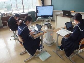 本日:2月8日(火)、授業のようすです。降雪の予報もでていましたが、雪は降りませんでした。しかし、かなり寒いです。どの学年も換気をしたり、隣の席と距離をとったりしてコロナ対策はおこなっていました。(校長:鎌田浩二)