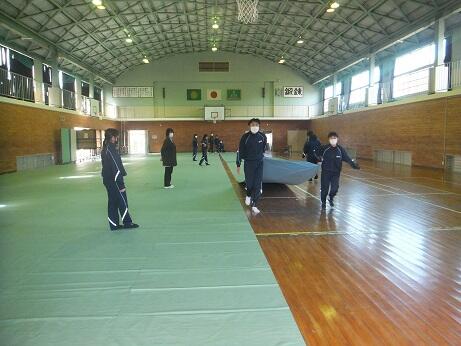 本日:2月14日(月)、昼休みに1・2年生が立志式に向けて、体育館にシートを敷いてくれました。お疲れ様でした。立志式は2月22日(火)に行われます。すばらしい立志式になることを期待します。