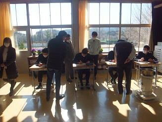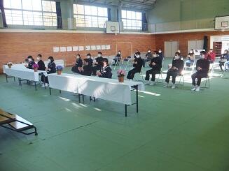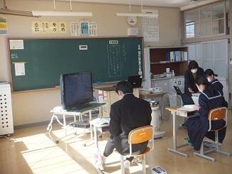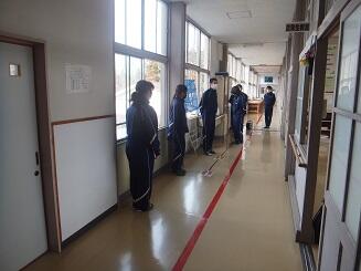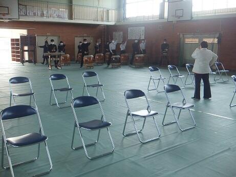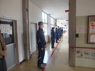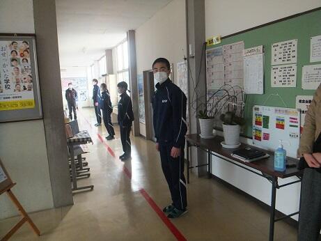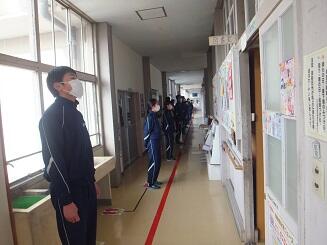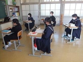 現在、放課後等を利用して、卒業式に向けた歌の練習が行われています。廊下を使って、換気等、感染予防をしっかりと行い実施しています。生徒数は少ないですが、気持ちを込めて練習しています。(校長:鎌田浩二)