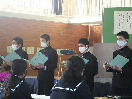 最後は、3年生がお礼の言葉を述べていました。また、次年度もよろしくお願いいたします。(校長:鎌田浩二)