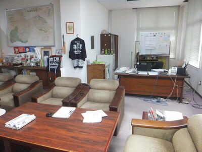 町長室にはじめて入りました。すごい!広い。
