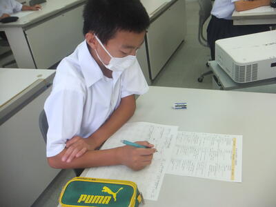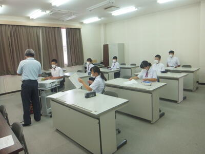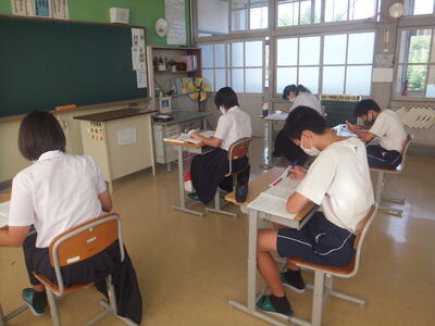 本日:9月29日(木)、朝の時間を使って『学力コンテスト』を実施しました。朝自習で取り組んだ内容の確認テストになります。自分の目標に向かって一生懸命に取り組んでいました。(校長:鎌田浩二)