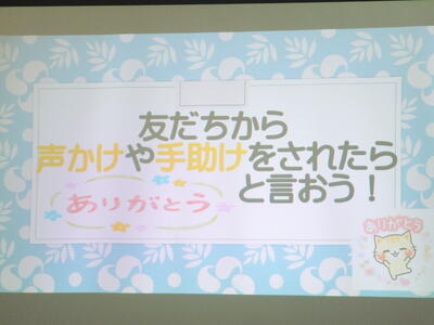 ●取組内容:友だちや先生から声かけや手助けをされたら「ありがとう。」と言おう。