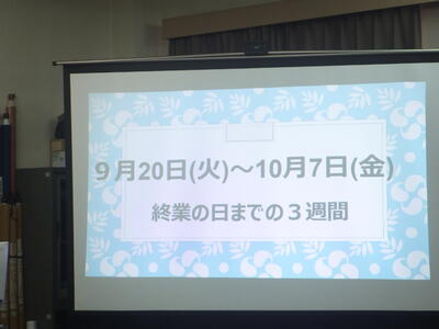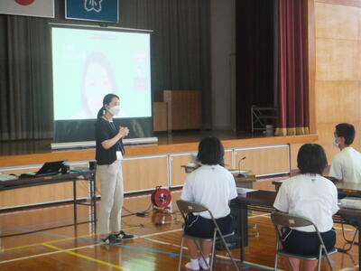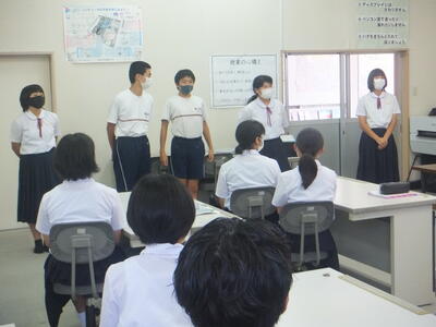 9月9日(金)、参観日を行いました。その中で、学校保健委員会(家庭教育学級も兼ねる)を開催しました。保護者の方には、お忙しい中、多数、出席していただきましてありがとうございました。生徒はワークショップの形で参加ししました。オンラインで、『LINE財団』の方の講話を聞き、グループでの話し合いを通して、様々な意見が発表されました。生徒のみなさんは、今後、SNSを使う機会が増えると思います。いろいろな事件に巻き込まれないようにしてください。(校長:鎌田浩二)